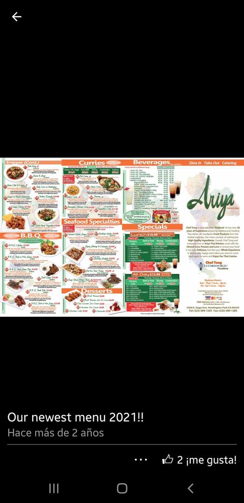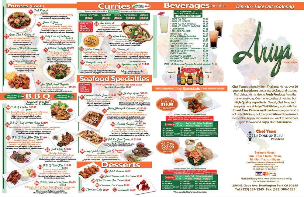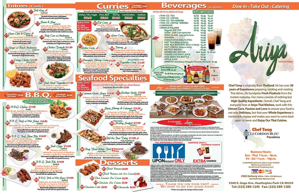 Introducing Ariya Thai Kitchen, a culinary gem nestled in Huntington Park, CA, offering a plethora of delectable Thai dishes. From mouth-watering Fried Shrimp Tempura to the savory Glass Noodle Soup, each dish is crafted with precision and bursting with flavors. The Pad See Ew and Shrimp Pad See Ew are must-tries, showcasing a perfect blend of ingredients pan-fried to perfection. Customers praise the generous portions and efficient service, with reviews raving about the Coconut Seafood Soup and Cashew Chicken. The ambiance exudes a cozy, family-friendly vibe, making it a great spot for lunch, dinner, or dessert. Whether you're a Thai food enthusiast or a first-time diner, Ariya Thai Kitchen promises an unforgettable dining experience that will keep you coming back for more.